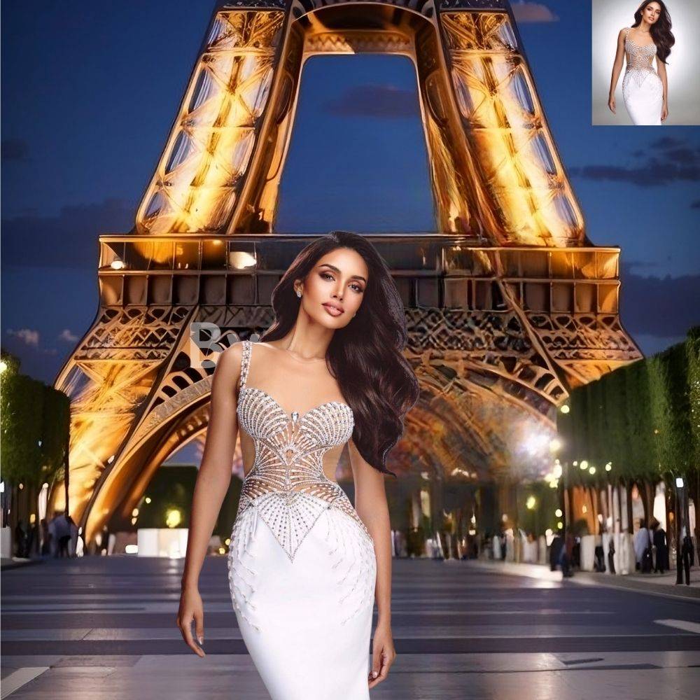 Eiffel Tower Paris France, Couple Honeymoon Vacation Wedding Debutante Chic Studio Aesthetic Digital Photography Backdrop Background Overlay