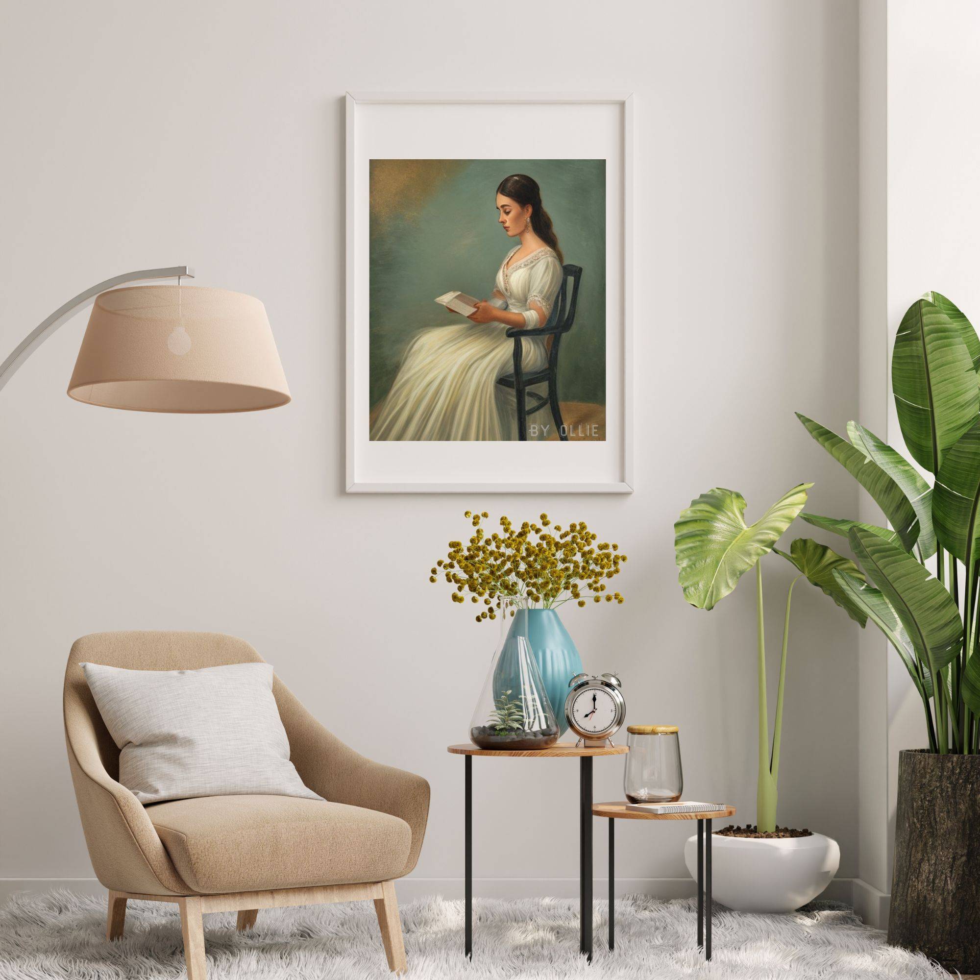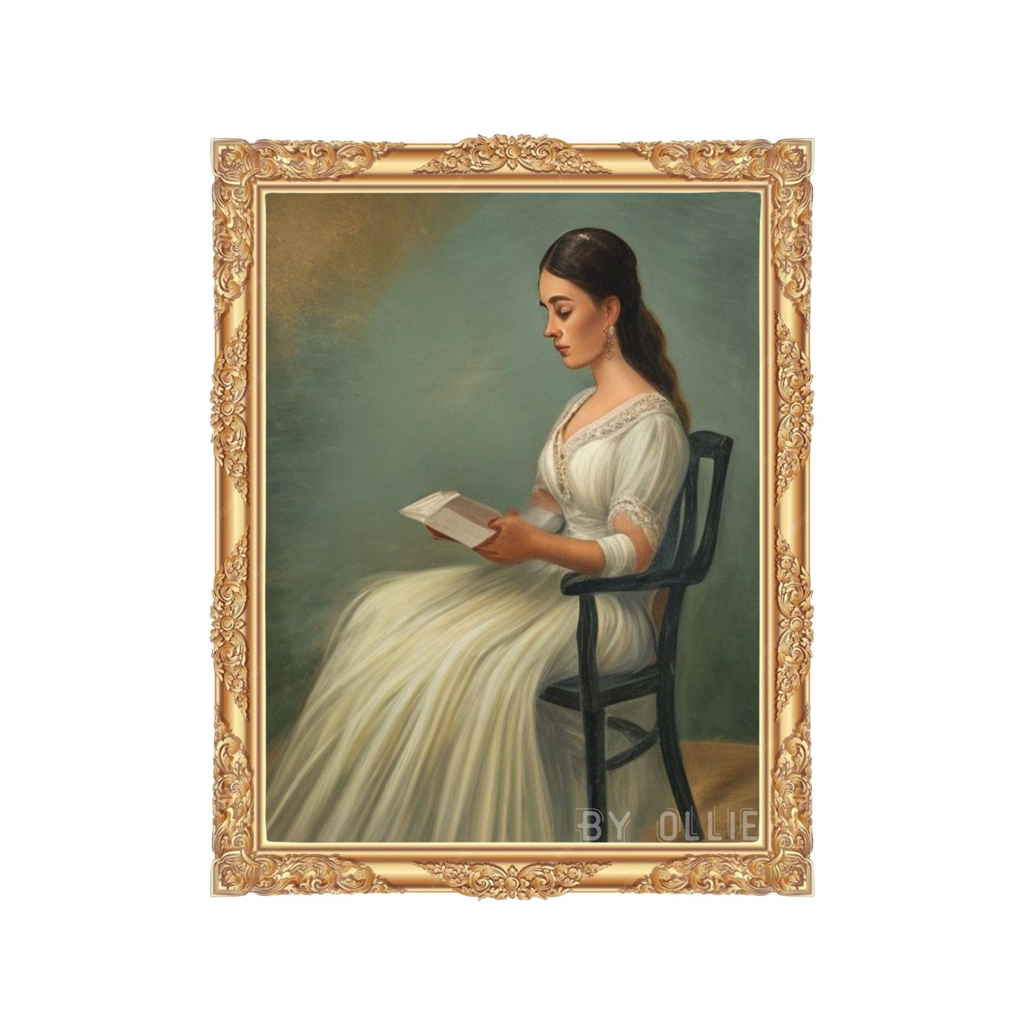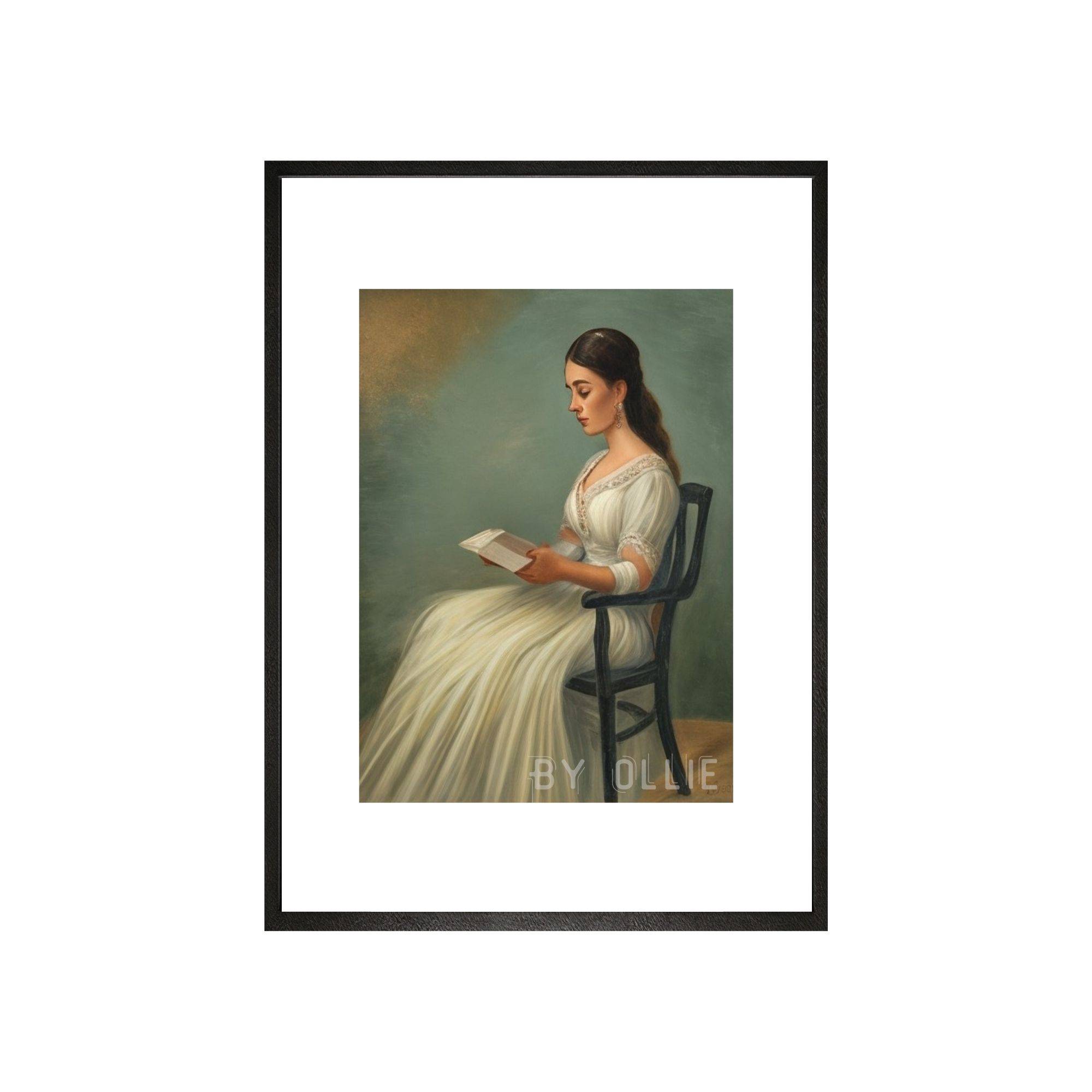 Vintage portrait painting of a woman reading. Perfect bedroom wall decor.